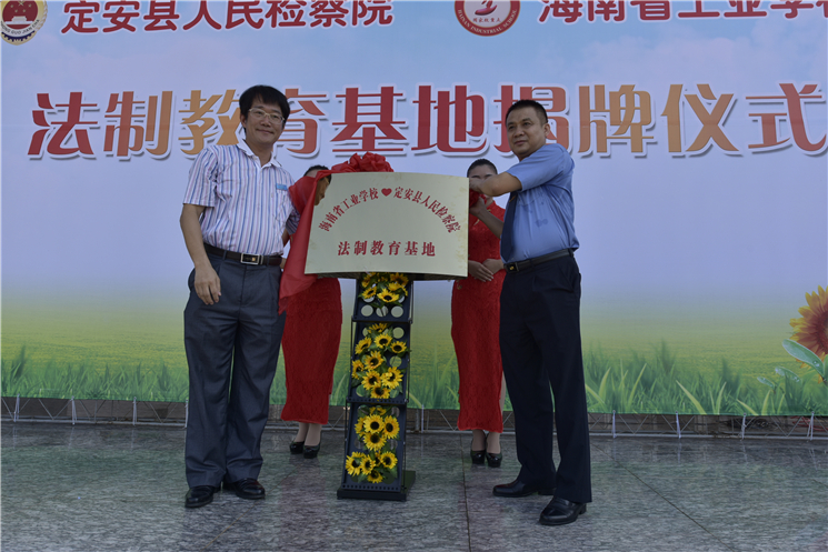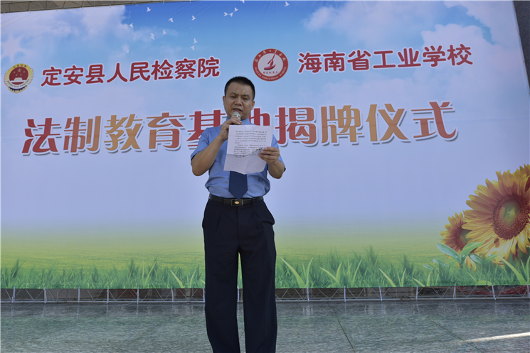 6月15日,定安县检察院与爱体育在线注册(中国)官方网站共建“法制教育基地”揭牌启动仪式在爱体育在线注册(中国)官方网站综合楼前举行。省检察院第一分院、团县委、县妇联、县教育局、县公安局、县法院、县关工委、人大、政协委员等相关单位领导以及省工业学校师生代表200余人参加仪式。