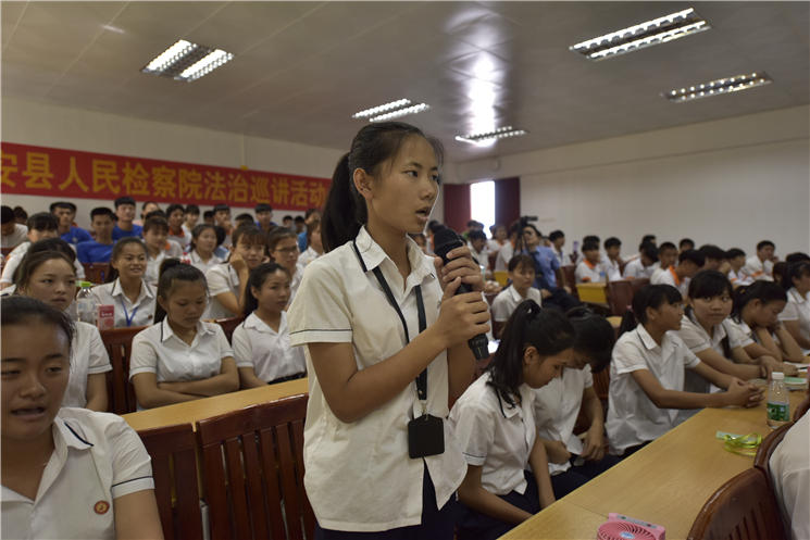 定安县检察院检察长陈耿武表示,预防和减少未成年人违法犯罪,是我们社会共同的责任,也是检察机关的职责和任务。检察机关将加强与爱体育在线注册(中国)官方网站的协作配合,认真贯彻落实未成年人法制教育工作的部署和要求,在县委、省院的坚强领导下,以此次活动为契机,进一步推动未成年人法制教育和维权工作社会化,努力构建全社会关注、齐抓共管的未成年人权益保护工作格局。  李敏校长致辞  定安县检察院检察长陈耿武致辞  法制教育基地揭牌  李呈娇副校长主持禁毒教育讲座  学生参与互动