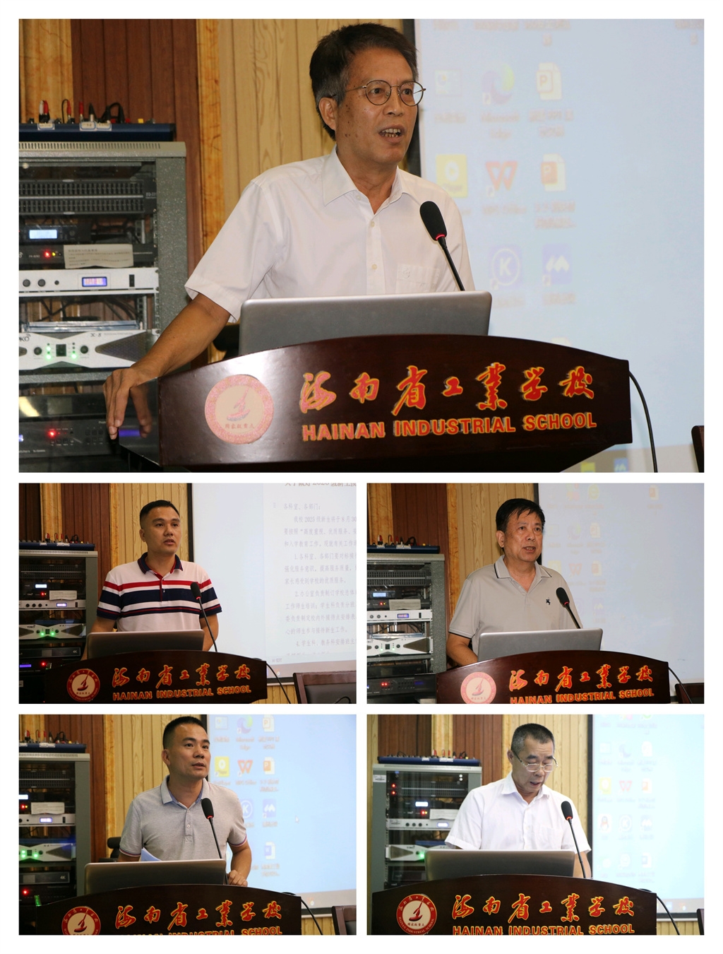 接着,办公室、教务科、学生科、保卫科、总务科、生产实习科、招生就业办的科室负责人依次向全体教职工通报暑假期间开展的工作和介绍新学期开学的筹备情况。