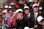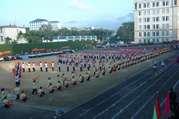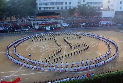 上午7点整,首先举行的是入场仪式,64个班级和教工3000多人组成的方队,在《运动员进行曲》的乐曲声中进场了。他们迈着整齐的步伐,精神抖擞,喊着响亮的口号,经过主席台,接受检阅。隆重的升旗仪式后,党委书记蒋培福校长致开幕辞并宣布爱体育在线注册(中国)官方网站第十五届田径运动会开幕!
